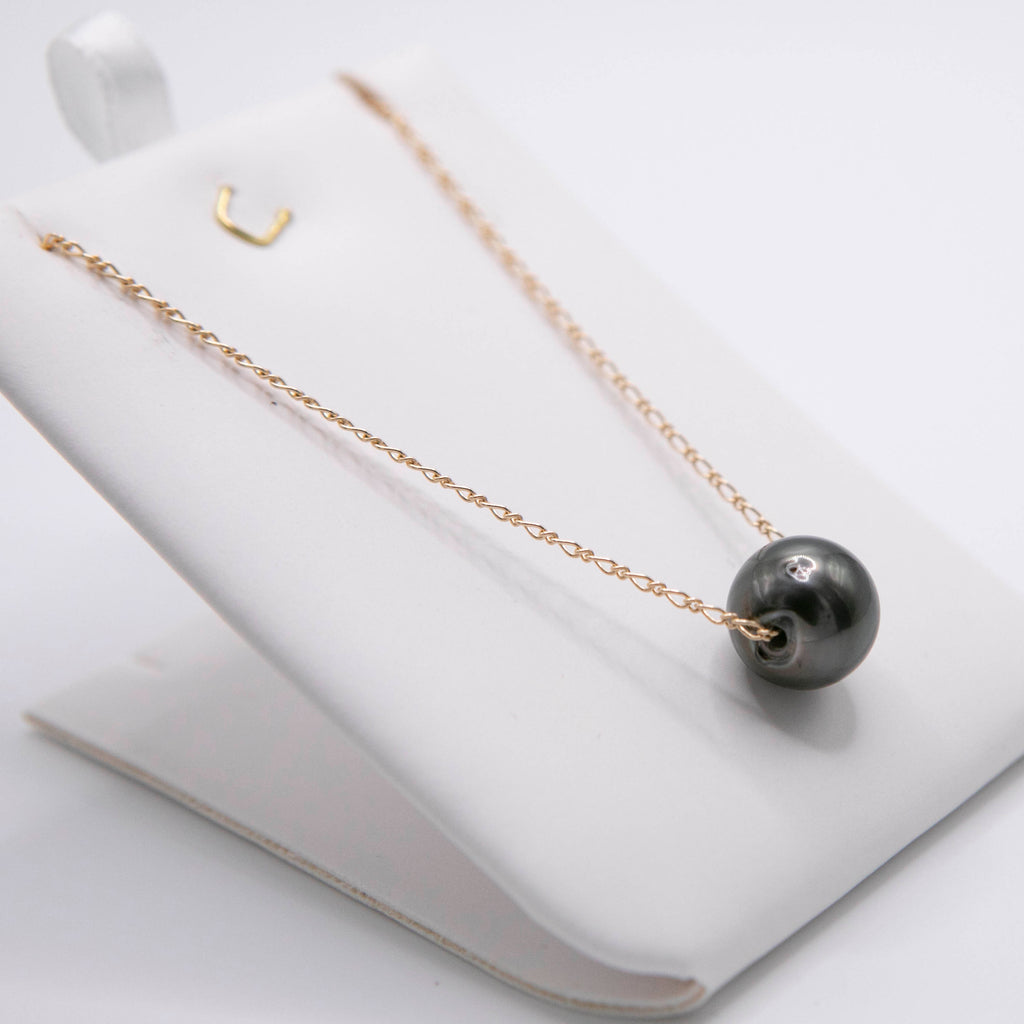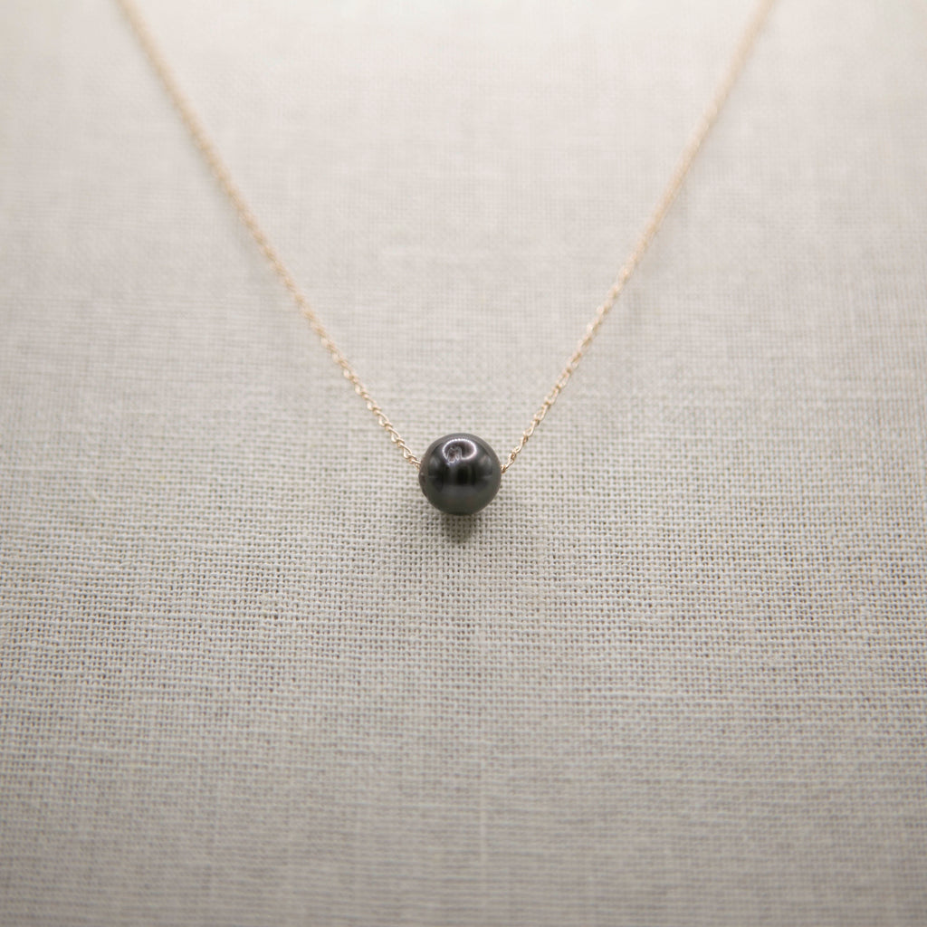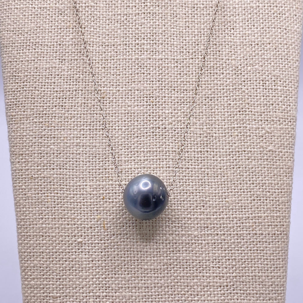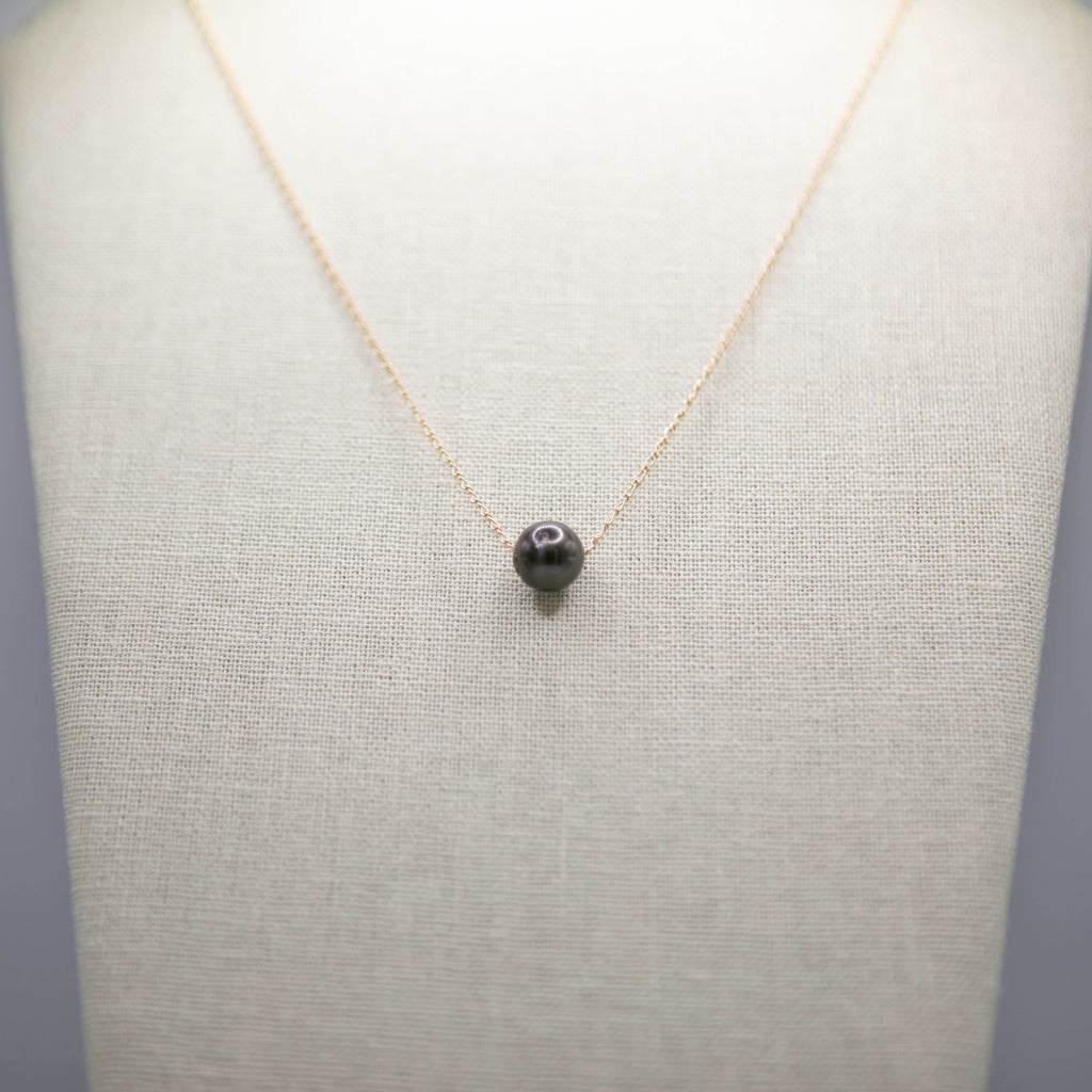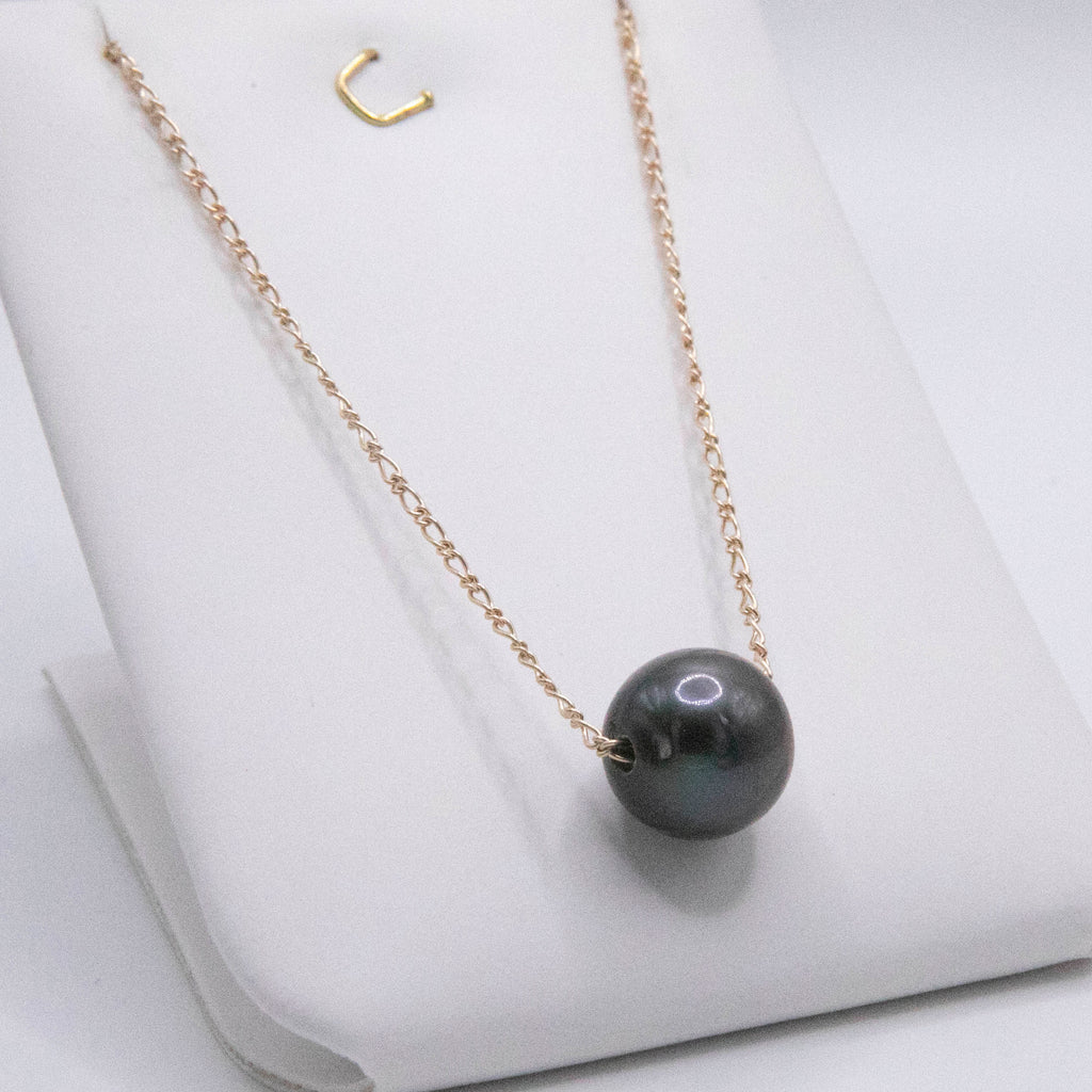 Floating 12mm Tahitian Black Pearl Necklace 20" 14k gold chain
