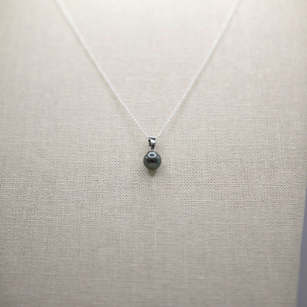 Single 6mm Tahitian Black Pearl Necklace 18" sterling silver chain