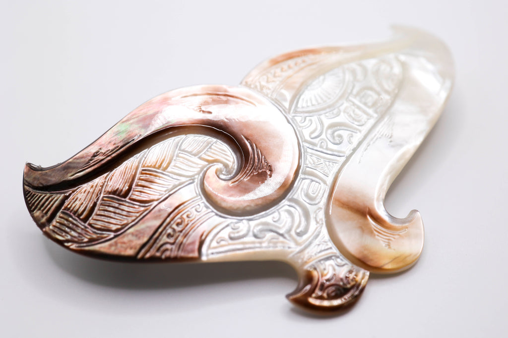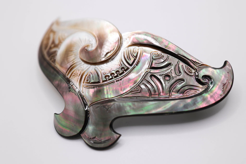 Whale tail carved Tahitian mother of pearl hair clip