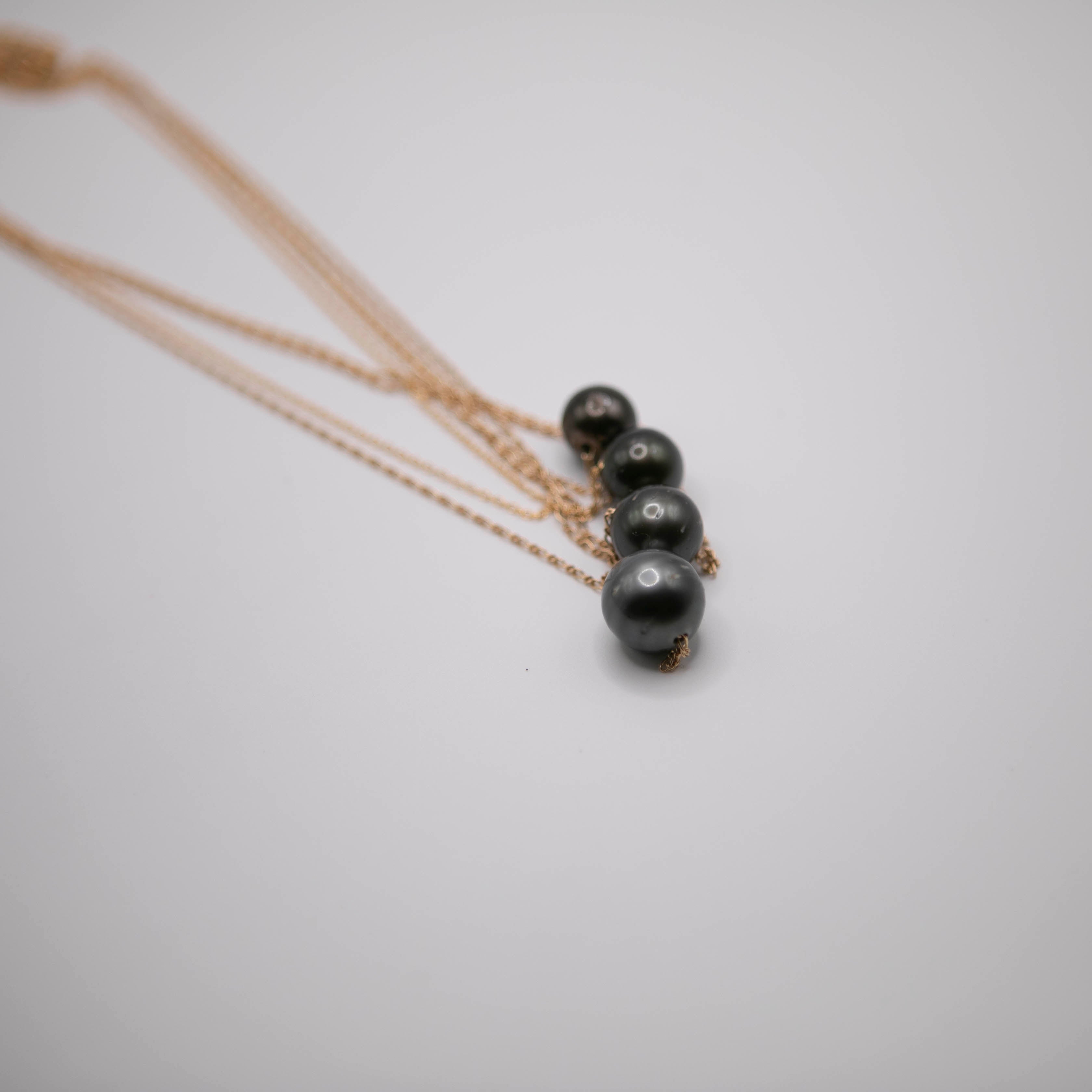 Natural imperfect Tahitian Black Pearl on a floating chain