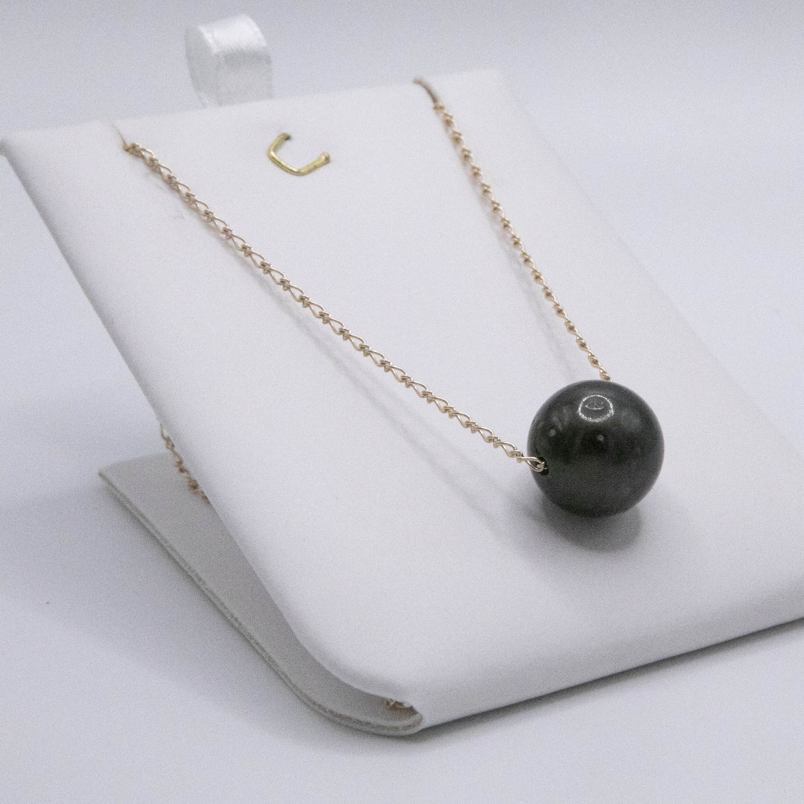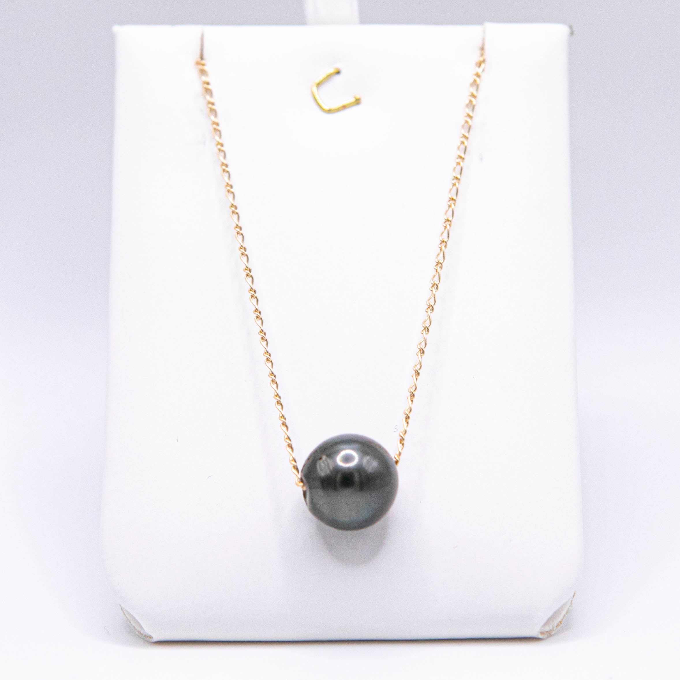 Floating 13mm Tahitian Black Pearl Necklace 18" 14k gold chain