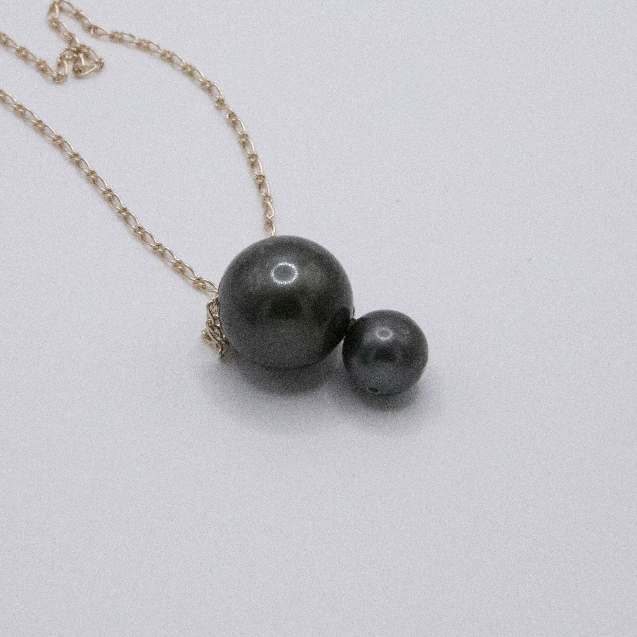 Natural imperfect Tahitian Black Pearl on a floating chain