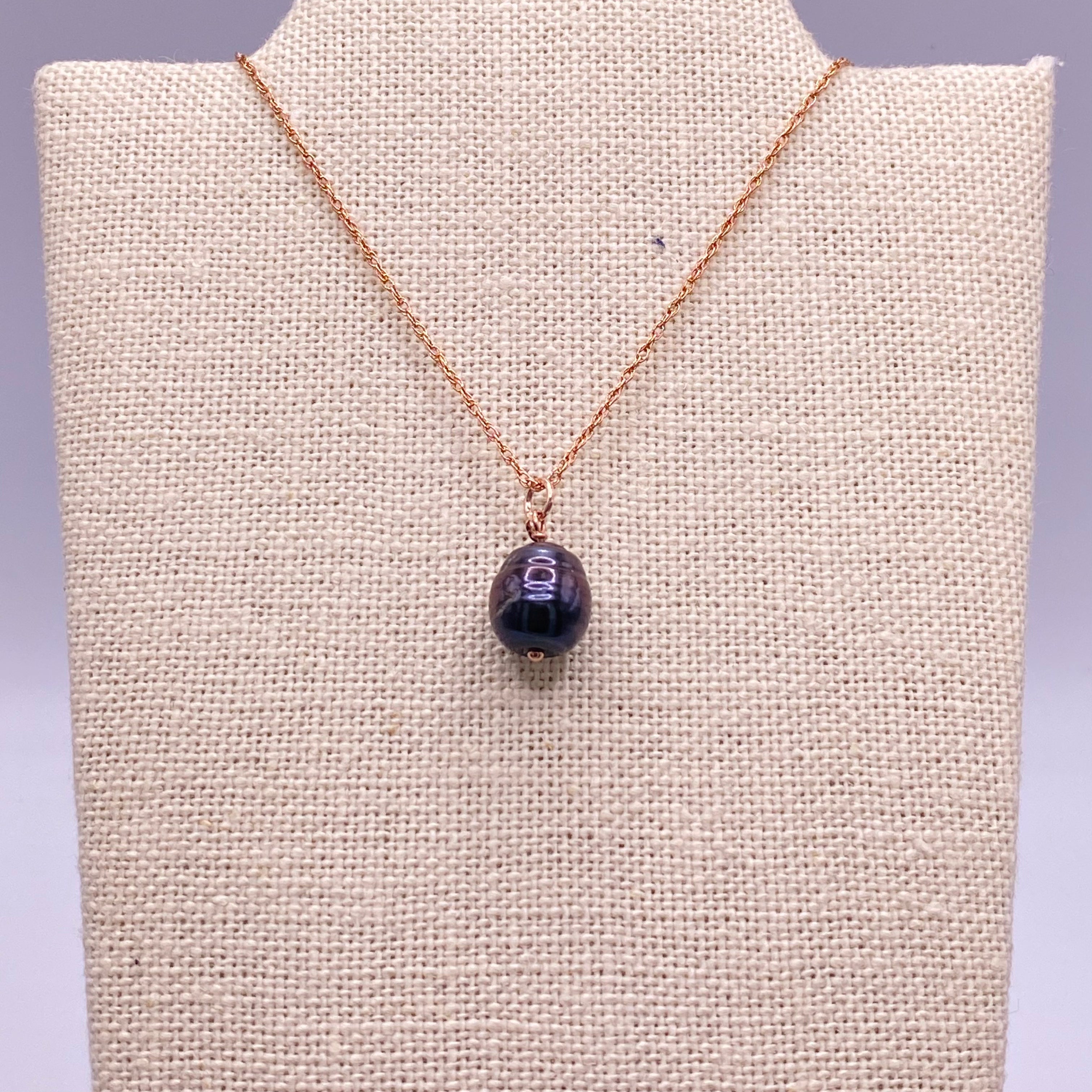 Natural imperfect Tahitian Black Pearl on a 18" rose gold spiral chain