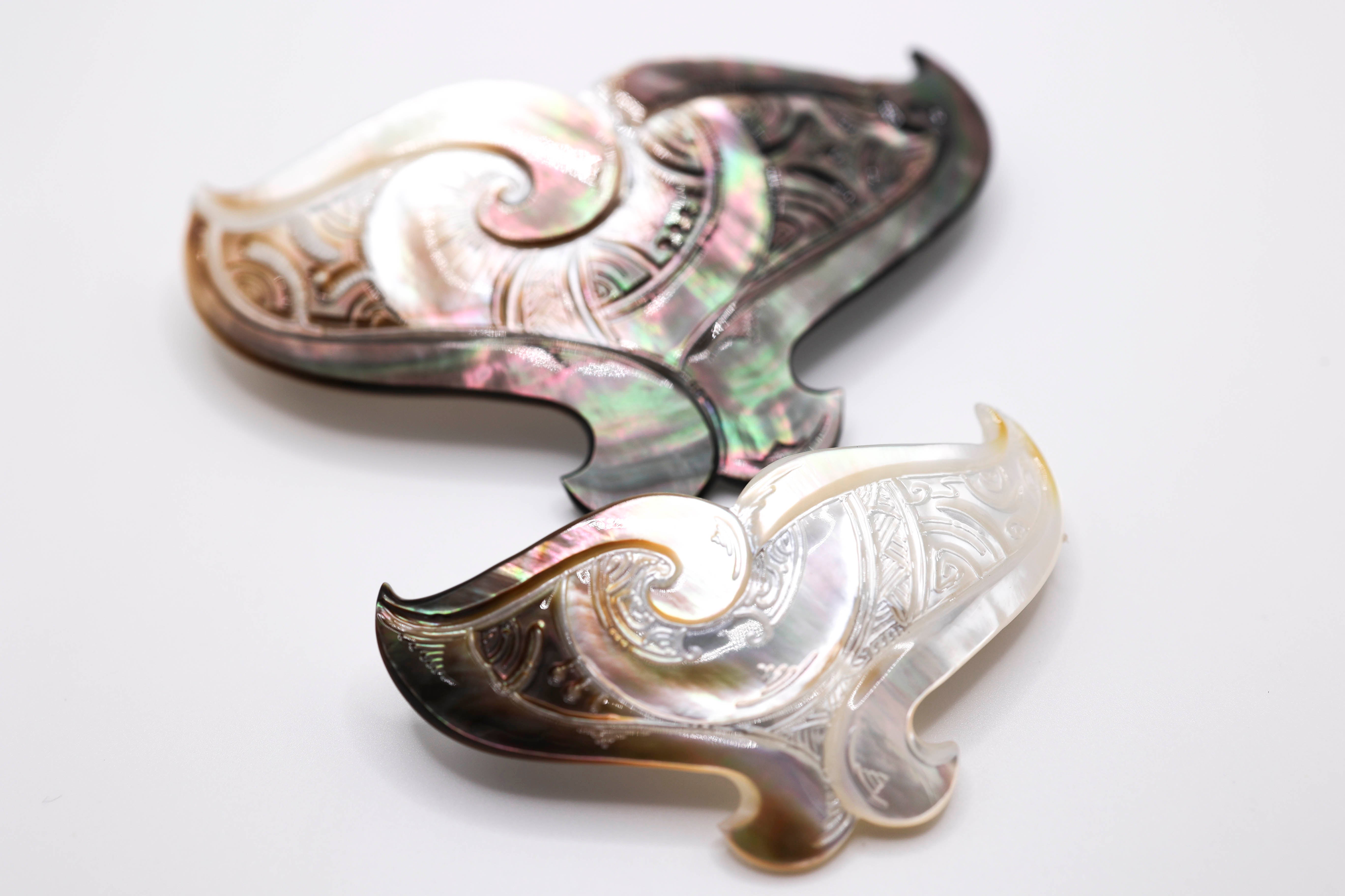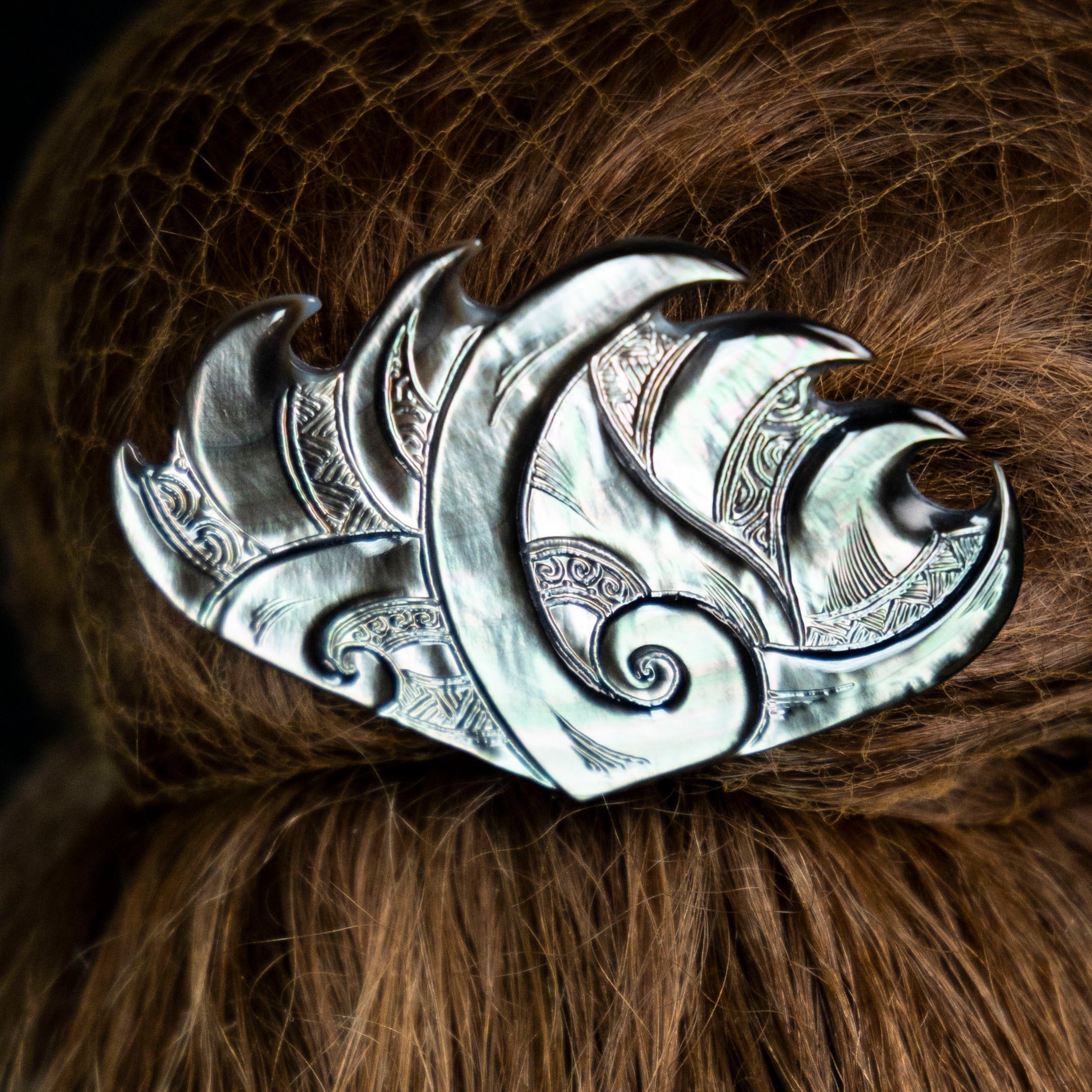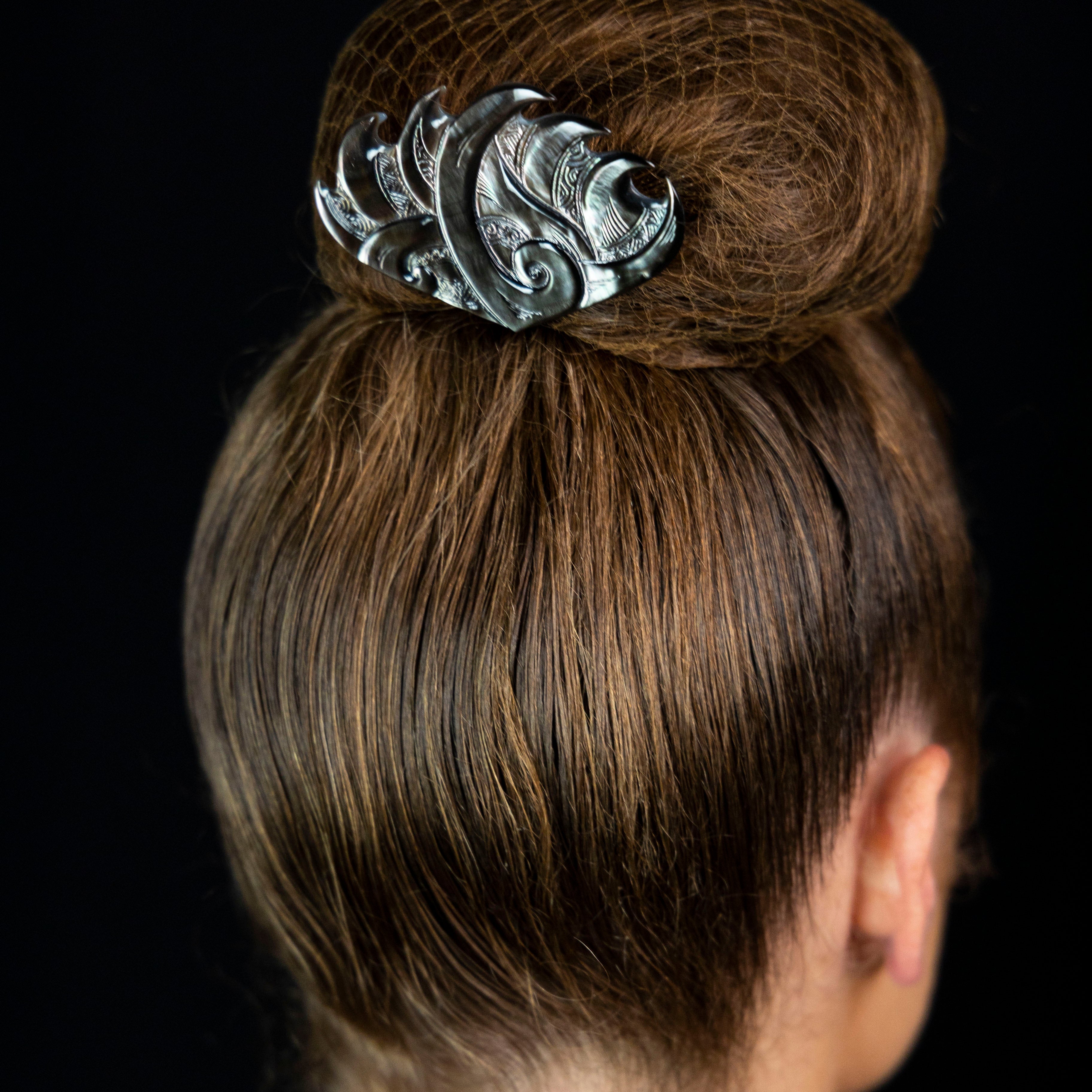 Small whale tail carved Tahitian shell hair clasp
