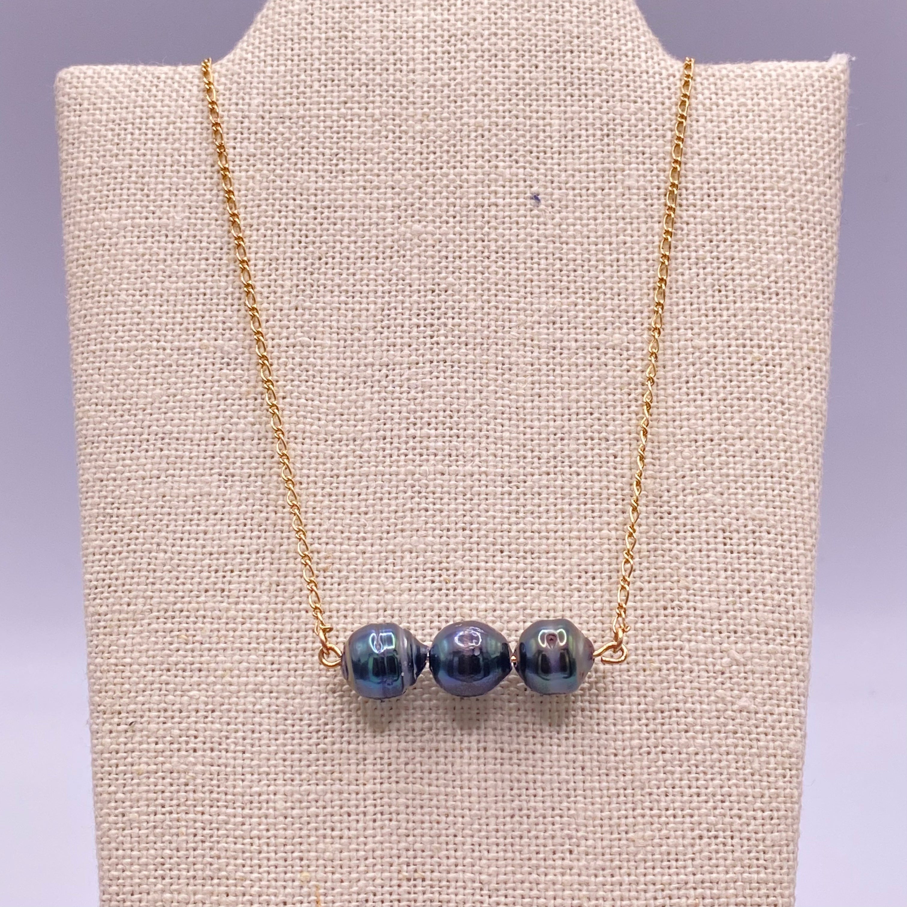 Triple Tahitian Black Pearl pearl Necklace 18" 14k gold chain