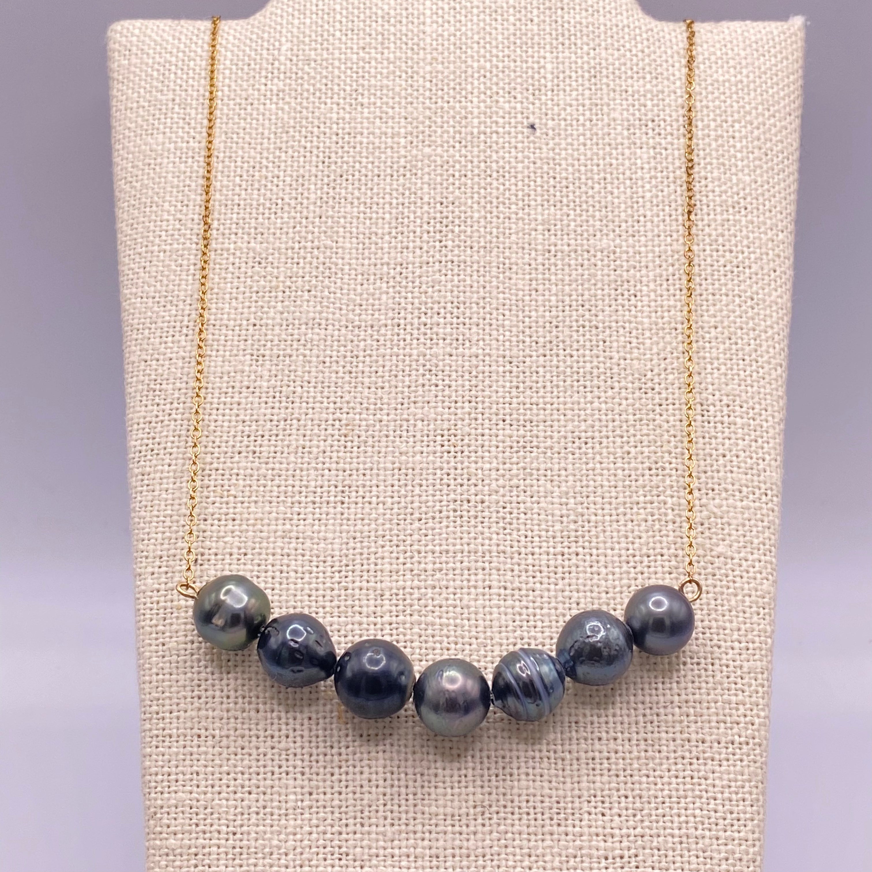 Seven 7mm Tahitian Black Pearl pearl Necklace 20" 14k gold chain